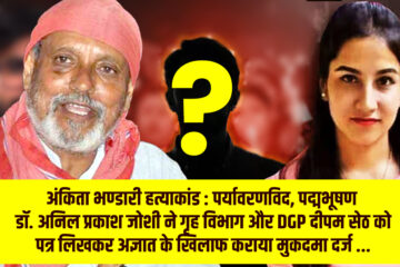 अंकिता हत्याकांड प्रकरण में डॉ. अनिल प्रकाश जोशी ने गृह विभाग और DGP दीपम सेठ को लिखा पत्र, अज्ञात के खिलाफ मुकदमा दर्ज…