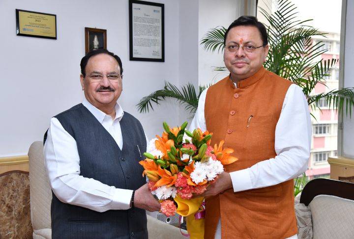 सीएम धामी ने की केंद्रीय स्वास्थ्य मंत्री से मुलाकात, स्वास्थ्य सेवाओं के विस्तार पर की चर्चा