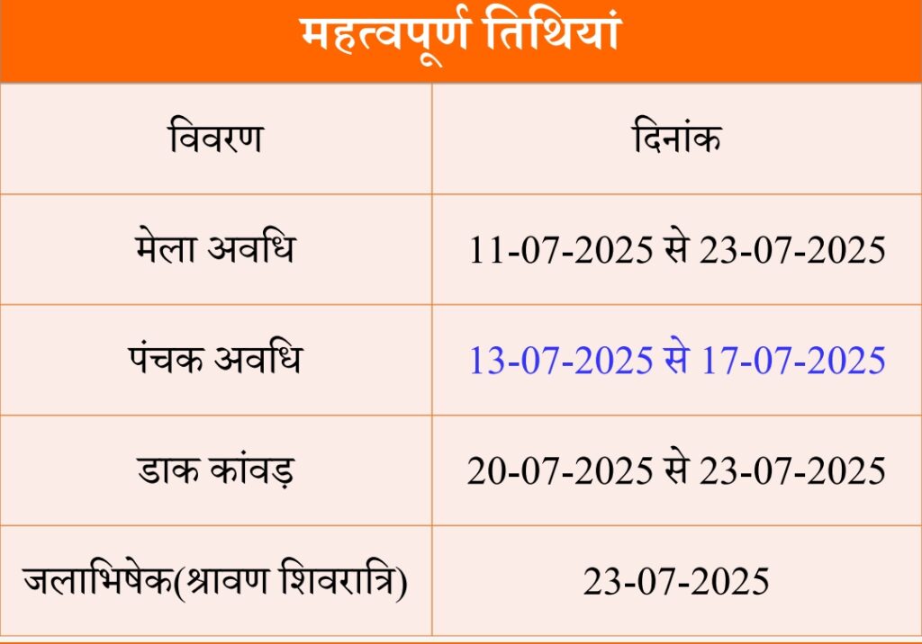 मुख्य सचिव ने समय रहते संबंधित कार्यदायी संस्थाओं की बैठक करते हुए उनको आवश्यक दिशा – निर्देश जारी करने को कहा। उन्होंने सिंचाई विभाग को विभिन्न स्नान घाटों और पुलों पर बेहतर साफ- सफाई और जरूरी सुरक्षा व्यवस्था सुनिश्चित करने के निर्देश दिए। कांवड़ मेला की अवधि 11 जुलाई से 23 जुलाई तक रहेगी। पंचक अवधि 13 से 17 जुलाई तक, डाक कावड़ 20 से 23 जुलाई तक तथा जलाभिषेक (श्रावण शिवरात्रि) 23 जुलाई को होगा।