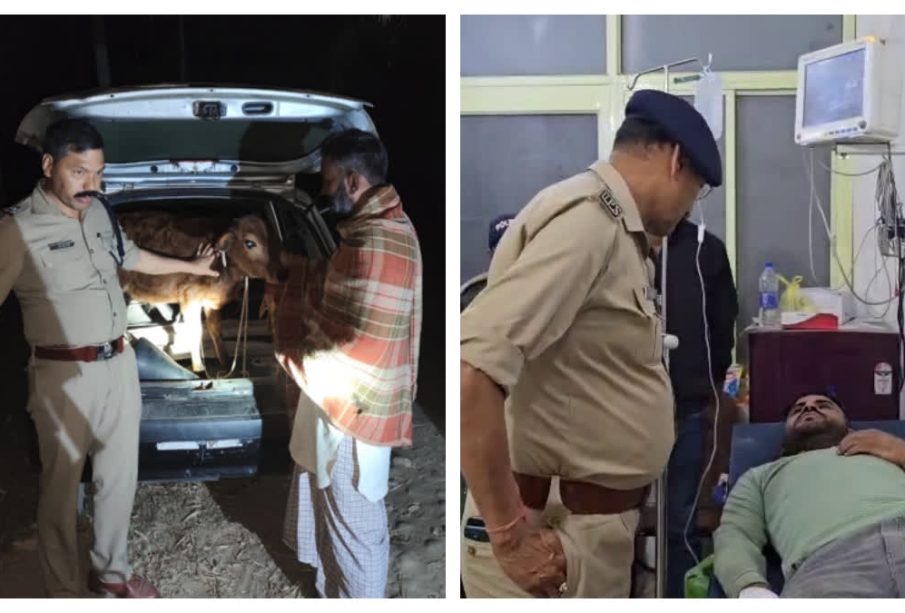 हरिद्वार। बुधवार रात गौ तस्करी की एक घटना सामने आयी है, जिसमें हरिद्वार जिले में बछड़ा चोरी कर कार में डालकर ले जा रहे गौ तस्करों को पुलिस ने आधी रात सिडकुल के नवोदय नगर क्षेत्र में घेर लिया। पुलिस से बचने के प्रयास में गौ तस्करों की कार एक पेड़ से टकरा गई्, पुलिस के अनुसार खुद को घिरता देख गौ तस्करों ने पुलिस पर फायरिंग कर दी जवाबी कार्रवाई में एक तस्कर को गोली लगने के बाद दबोच लिया गया तथा अंधेरे का फायदा उठाकर उसके दो साथी फरार हो गए। घायल गौ तस्कर को जिला अस्पताल में भर्ती कराया गया, प्राप्त जानकारी के अनुसार पकड़े गए तस्कर की पहचान सहारनपुर के नकुड़ निवासी प्रदीप के रूप में हुई है। साथ ही पुलिस ने उसके फरार साथियों की तलाश में पूरी रात जिले भर में कांबिंग अभियान चलाया।
