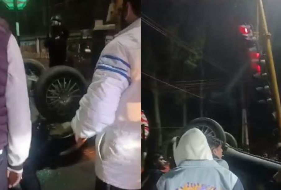 देहरादून ONGC चौक के पास सड़क हादसा, डिवाइडर से टकराकर पलटी कार