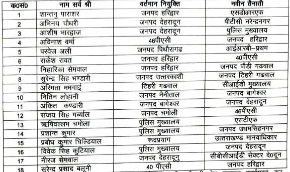 उत्तराखंड पुलिस विभाग में बड़ा फेरबदल, नए 28 सीओ को मिली तैनाती, 18 के तबादले, देखें पूरी लिस्ट