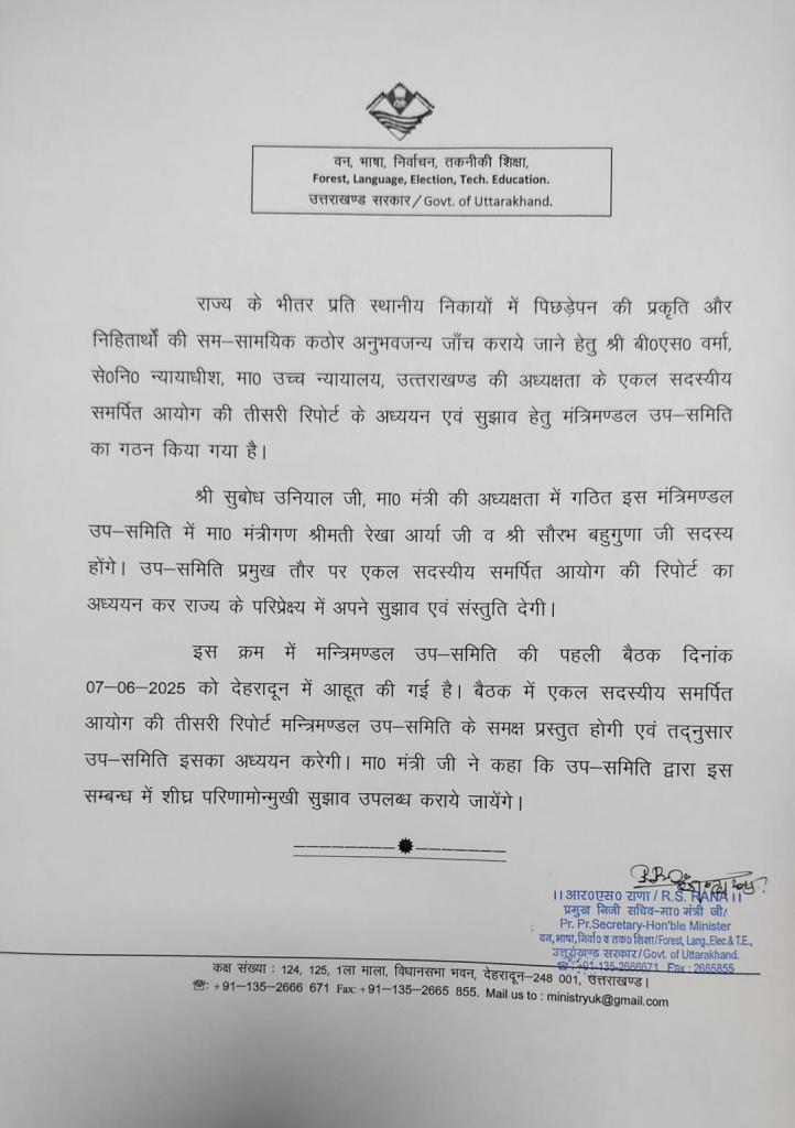 उत्तराखंड: पंचायत चुनाव को लेकर मंत्रिमंडल की उपसमिति का हुआ गठन, इस दिन होगी पहली बैठक