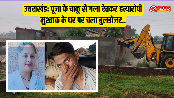 उत्तराखंड: पूजा के चाकू से गला रेतकर हत्यारोपी मुश्ताक के घर पर चला बुलडोजर..