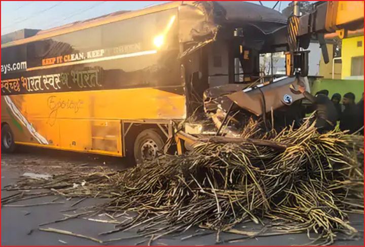 देहरादून में वॉल्वो बस गन्ने से लदे ट्रैक्टर से टकराई, ड्राइवर की मौत